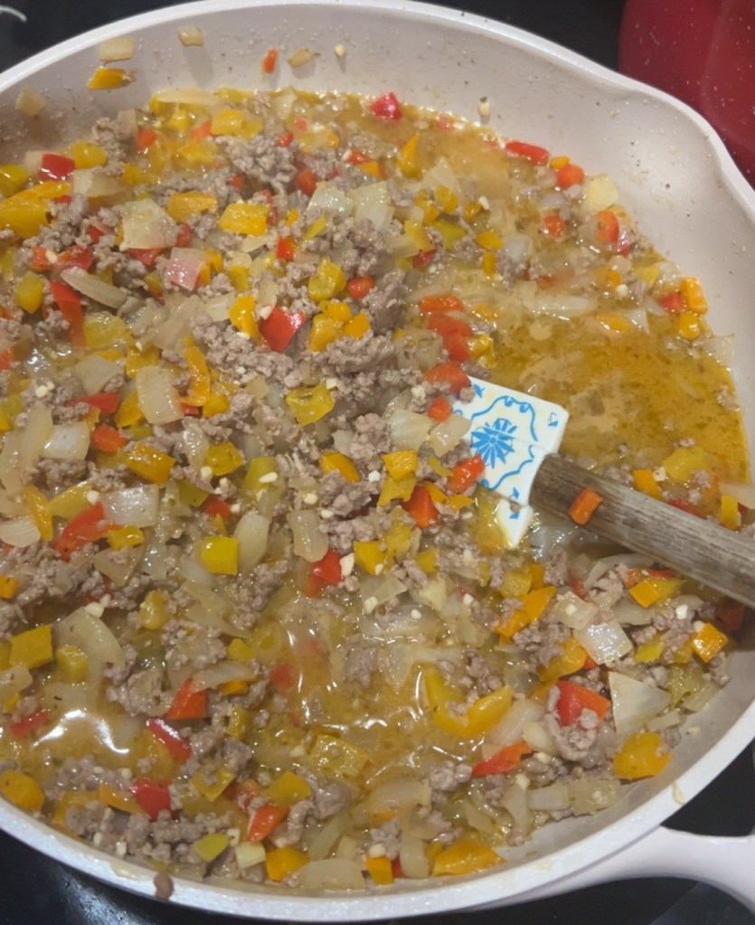 - Brown the meat: Add ground meat to the skillet and cook until fully browned, seasoning with garlic powder, Italian seasoning, smoked paprika, salt, and pepper.