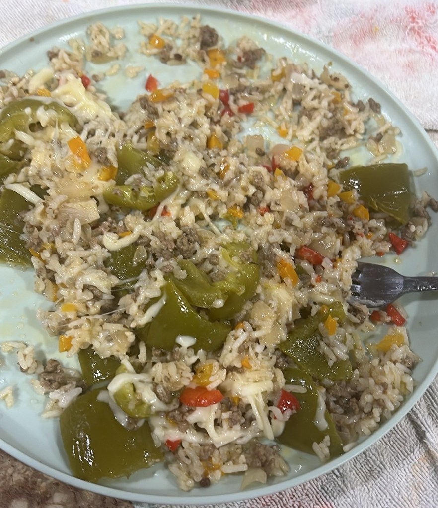 They’re gluten-free, celiac-safe, filling, and loaded with seasoned meat, sautéed veggies, melted cheese, and rice—all tucked inside a perfectly roasted bell pepper shell. It’s comfort food without the compromise.