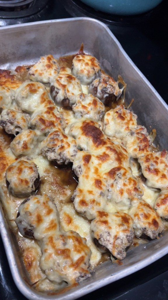 7. Bake: Bake at 375°F (190°C) for about 20–25 minutes, until the mushrooms are tender and the filling is heated through.